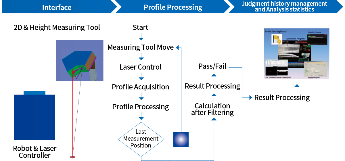 It is a system that analyzes the shape of the welding bead by 3D SCAN and measures the welding length, bead cross-section area, throat thickness, leg length, etc. to judge the welding quality.